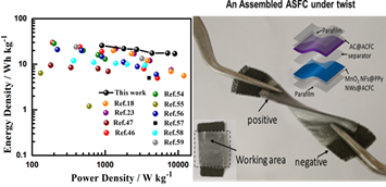 随着便携式电子设备需求的快速增长,柔性、轻质的超级电容器作为一种新型的储能器件,以其高的能量密度和便携性受到广泛的关注。该课题组采用低温,简单,环保的方法合成了一种以PPy纳米线为导电骨架和以极薄的MnO2纳米片为壳的微纳结构。这种核壳结构高效地增加了MnO2的活性面积和导电性,通过协调利用MnO2在中性电解液中的高稳定性和聚合物PPy的优良导电性,构建了快速、丰富、高效的电子和离子输运路径。组装的柔性超级电容器拥有杰出的稳定性,机械柔韧性,宽的电压窗口和高的能量密度。