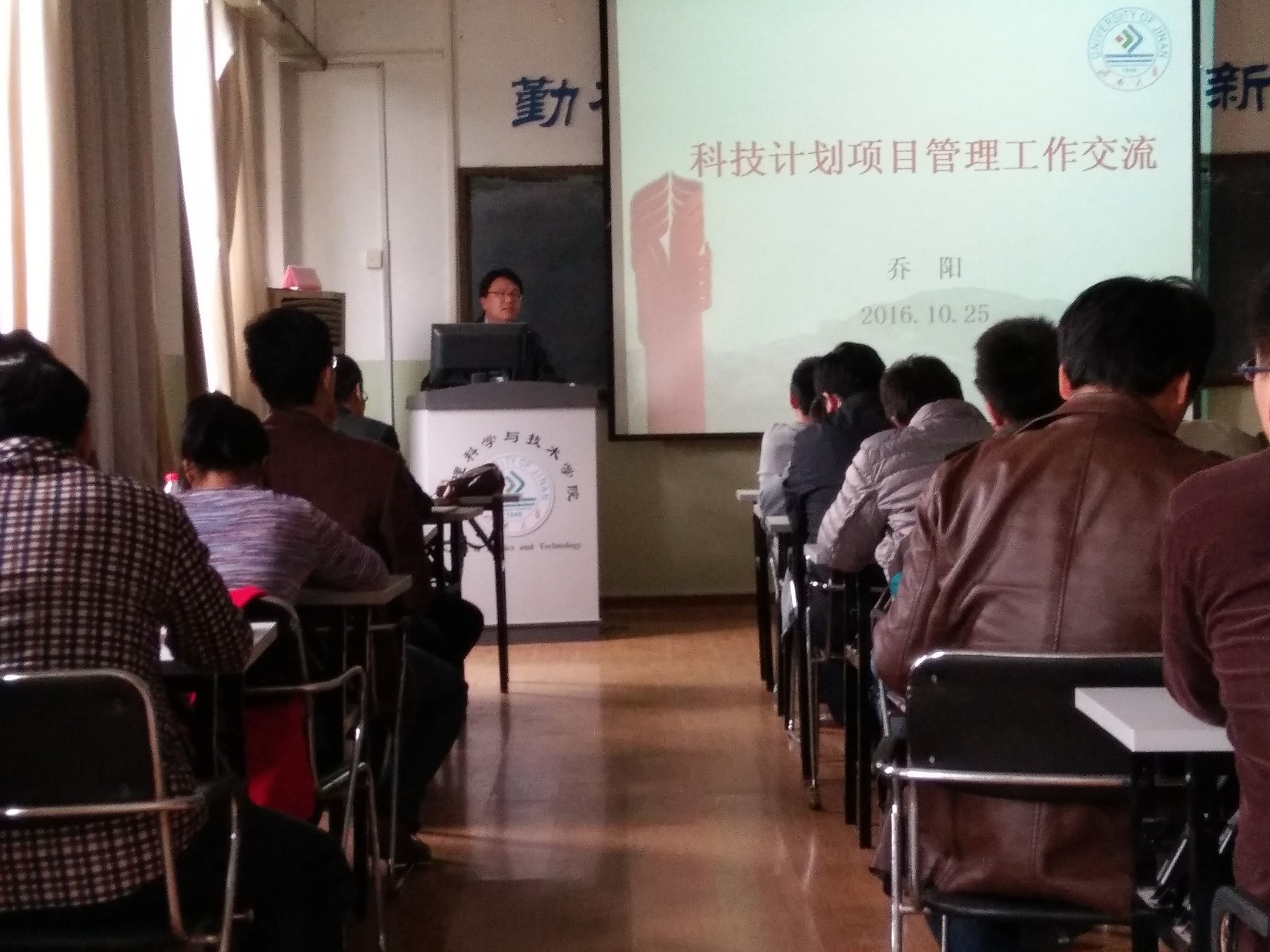 首先,乔阳老师从纵向科技项目分类、国家级项目申报及管理要求、省部级项目申报及管理要求等八方面为青青草原教师详细地讲解了科技项目申报过程与注意事项。如,我们要积极联系全国相关领域的优势创新团队,建立合作关系,聚焦研发问题,强化基础研究,集中力量,联合攻关;采取填写预申报书、正式申报书两步进行;尽早提交申请表,避免集中交表带来的不便。后来,乔阳老师特别指出,2017年度国家重点研发计划高新领域重点专项的申报项目,建议从煤炭高效利用、新型能源技术、智能网络及网络安全、云计算及大数据等我国需要发展的领域选取。在讲解过程中,乔阳老师还以亲身经历为例,分享了他在科技立项方面宝贵的经验。