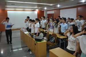 首先郑书记宣布典礼开始,全体起立奏唱国歌。
