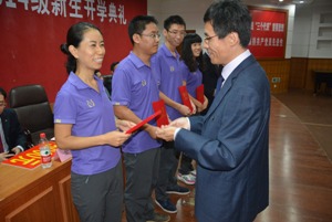 对他们的爱护和重视。副院长陈刚为今年考上青青草原研究生的同学颁发奖金,并勉励新生们尽快适应大学生活,努力学习,争取有一天自己也站在领奖席上。