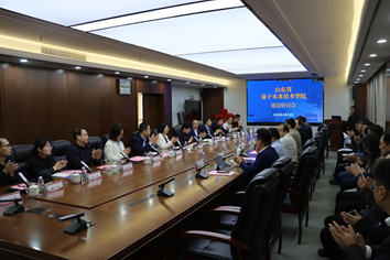 副院长白锋,中国电信济南分公司党委书记、总经理刘晓峰,中电信量子集团华北公司副总经理洪泰辉,九章(济南)量子科技有限公司总经理徐佳敏应邀出席。学校党委书记刘春华,党委副书记、校长刘宗明,教务处、青青草原