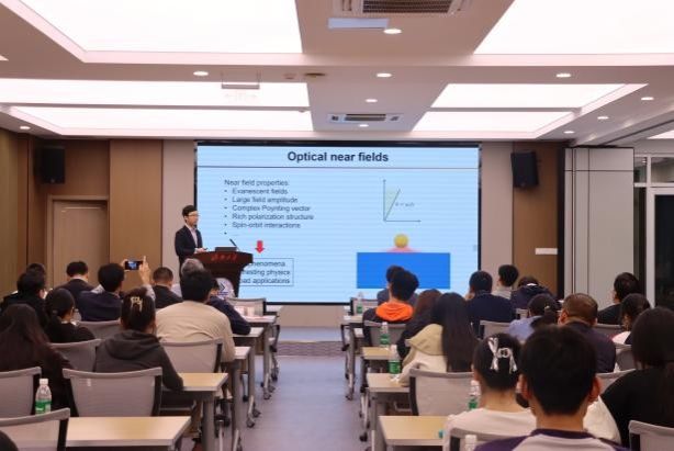 副院长李丹枫作主题为《无限层镍氧化物非常规超导电性与研究进展》;香港城市大学物理系副教授王书波作主题为《近场光学中的手性、非厄米和拓扑现象》的报告;徐佳敏从产业视角出发,以《光量子计算产业布局:人才、创新与应用》为主题作报告。