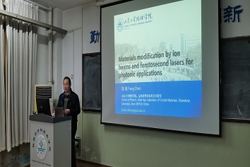 2019年12月25日,山东大学陈峰院长陈峰应邀到青青草原为青青草原师生做了一场关于“离子束和超快激光材料改性及其光子学应用”的学术报告。青青草原