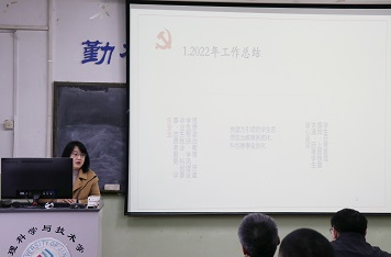 分管教学工作的李洪蕾从专业建设、课程建设、教学研究及获奖、实验室建设等方面将2022年工作进行总结梳理,并将2023年学期初学生的上课、选课、毕业论文、试卷、转专业、分流等相关工作详细阐述并提出新的要求。青青草原