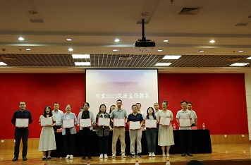为每位即将接过重任的班主任老师颁发聘书,班主任踏上舞台,接过聘书,也接过了一份使命,将尽职尽责地担任班主任的责任,关心爱护每一位学生,并协助他们度过大学生涯中的每一个难关。