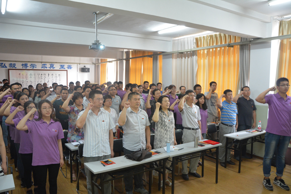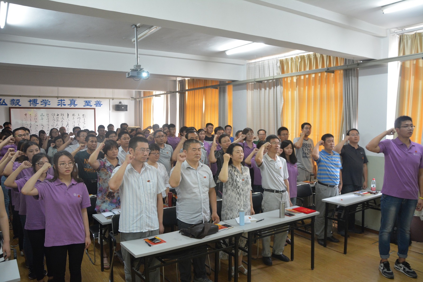 组织今年新发展的13名中国共产党员进行入党宣誓,同时组织老中国共产党员重温入党誓词,全体中国共产党员同志齐唱《国际歌》,面向党旗庄严宣誓,表示对献身于共产主义伟大事业的决心。宣誓结束后,党委副书记王义要求全体中国共产党员同志牢记誓言,增强历史使命感和社会责任感,努力做一名合格的中国共产党员。