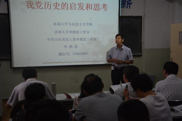 党委书记郑爱华为李朋忠老师颁发聘书,随后李朋忠老师为全体中国共产党员同志上专题党课。他以《我党历史的启发和思考》为题,从“历史选择了中国共产党、党发展壮大的过程、党成立以后做了什么、党的发展历史的启示、党面临的机遇与挑战以及需要思考的问题”六个方面做了一场生动的报告。李朋忠老师的党课旁征博引,深入浅出,感情真挚,幽默风趣,对中国共产党的历史和现实、理论和实践等问题进行深刻剖析,使大家进一步增强对党的认识。