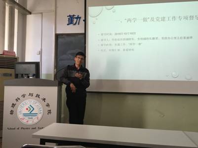基层党建和“两学一做”教育活动等方面所做的成果及学校专项督导组提出的意见和建议,向全体中国共产党员进行通报并提出整改要求。