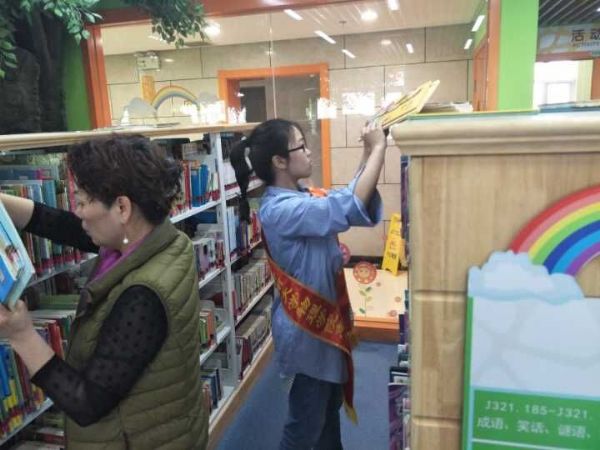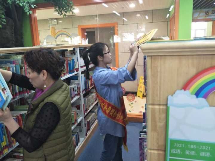 志愿者走进山东少年儿童图书馆,开展主题志愿活动。
