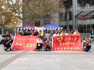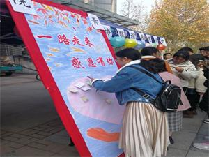 青年志愿者协会在朱思齐老师的指导下,由领队孔德恒带领着志愿者们于八食广场举办了本次"受之毫厘,感恩于心"的感恩节活动。