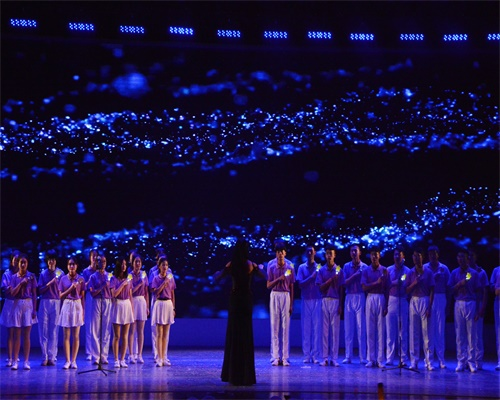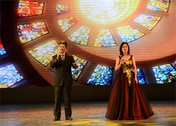 大礼堂花团锦簇、载歌载舞。“物华苒苒 理想扬帆”青青草原