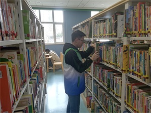 图书馆为青少年提供了一个知识的宝库,丰富了他们的精神世界,在图书馆中他们可以享受图书的乐趣。很多青少年都积极地借阅归还图书,从而有很多图书都来不及上架。为了维护图书馆的借阅环境,我们的志愿者同学在图书馆里忙碌着,帮助图书管理员整理图书,为前来读书的同学和市民们指引藏书的为向,虽然十分辛苦,但是他们依然努力认真做好自己的任务,体会到的帮助他人的快乐。