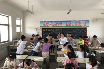 最后是数学拓展课。队员们交给孩子们各类计算的简便运算法,在数学的世界中,孩子们逐渐发现了其中的奥秘,很多孩子也对数学渐渐感兴趣了起来。志愿者老师们从“学“转变为”教“,固然很辛苦,但看到孩子们明亮的眼睛中对知识的喜爱,灿烂的脸庞上对梦的执着,以及童心之中对他们的认可,这些付出已不必去在乎。