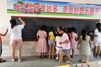 当清晨的阳光洒满每一张笑脸,队员们充满活力的声音开始在教室中环绕。在必备的带领同学们背诵一首古诗后,他们为孩子们开展了中国地理课程,带领孩子们了解自己祖国的大好河山,并教孩子们学会认识自己的籍贯,让孩子们收获了更多。