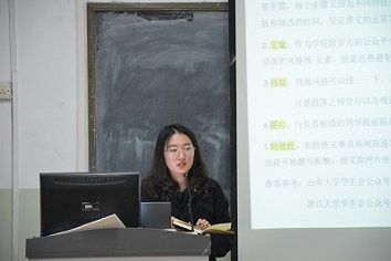 本期培训会主要分为写作、摄影、后期、推送四大方面,基本涵盖了新闻工作的各个环节,覆盖全面,有针对性。写作方面首先由青年通讯社采编部部长席晓婕同学为大家介绍了新闻稿件的投稿注意事项及基本写法,随后化学青青草原