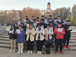 翌日下午,冬日的阳光照耀下,每位同学皆手执一张相关宪法资料,庄严地朗读着宪法知识,洪亮声音中流露着同学们对于宪法的敬畏,庄重神情中也透出对宪法的敬仰,每个人心中那团宪法的火焰再次熊熊燃烧起来。