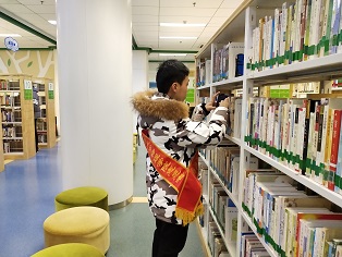 书,记载我们辉煌的历史,蕴藏着我们先人的智慧,而图书馆则是书籍的港湾,也是每一位读者心灵的慰藉地。11月30日,同学们来到图书馆,在图书馆工作人员的指导下,志愿者们帮助图书馆管理员有序地整理归还的图书、帮助读者找到相关图书、维持馆内秩序、为孩子们解答图书中的各种难题。有人来借书时志愿者们也会替管理员们帮借书的人办理借书手续,在闲暇之余还帮助图书馆管理员们打扫馆内的卫生。孩子们都沉浸在自己的书香世界里,志愿者们也为自己做出的贡献而感到高兴。