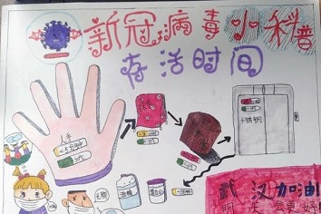 青年志愿者协会官方QQ空间展示制作的海报,同学们可以相互学习和借鉴,增加对绘画和防疫工作的理解。