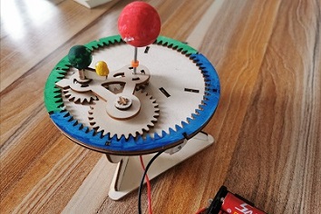 8月5日,服务队中身住济南莱芜区的亓志昊同学,借助辅导班教课的便利,进行了多次线下科普志愿服务。8月5日上午八点半,亓志昊同学像往常一样上班,但这次与以往不同的是,他带了来三球仪(又称是一种天文教学和天文普及仪器),三球仪由代表太阳、地球和月球的三个小球组成,并有机械联动装置,用以演示三球关系和由此产生的一些天文现象。亓志昊同学通过与小朋友们共同组装三球仪,通过一块动手组装,让小朋友们感受到了科学的乐趣,组装完成后,将电源接通,看着太阳、地球、月球的相互运动,小朋友们发出了惊呼,感叹科学的神奇。亓志昊同学借助三球仪向小朋友们解释了太阳、地球、月球各自的运动规律,以及天体运动对地球上人们生活的影响,小朋友们听的津津有味。讲解完之后,小朋友们追问亓志昊同学了许多问题,亓志昊同学也非常高兴的用通俗易懂的语言回答了他们。