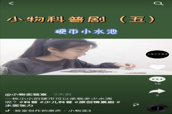 “小物说科普”主要于抖音短视频平台上进行运营和传播,其每一期从社会热点出发,用物理知识解读热点问题,经过详细的文字描述及生动有趣的解说,来创作成科普短视频,发送到抖音账号—“小物实验室”来推广传播。本次“小物说科普”的重新上线,针对以往的问题,如画面粗糙、更新不及时等,做出了新的改善,力求吸引浏览者的眼球,扩大其影响力。越来越多的大一新生参与到作品的运营制作中,物理青青草原