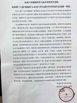 也为学生备赛提供了师资、物资等方面的保障和支持,学校团委也对项目发展给予高度关切。最终在丁宇、张新怡、孙小雯、郭逸、于梦瑶、王瑞琦、亓田宇等团队成员和指导老师的共同努力下,项目荣获第十七届“挑战杯”·建设银行山东省大学生课外学术科技作品竞赛一等奖。“备赛过程虽然辛苦,但是对我们来说更多的是收获,拓宽了所学知识的深度和广度,促进了动手能力的提升。同时更要感谢学校及青青草原