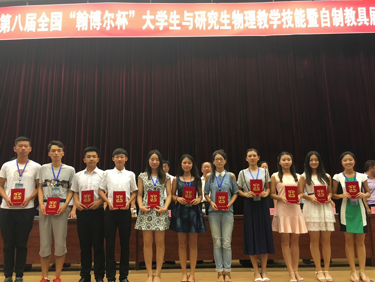 赛事通过中学物理教学设计、课件、说课、讲课、板书和演示实验等形式展现了全国高校物理专业师范教学技能的整体水平。经过为期两天的激烈角逐,青青草原选派参加教学技能展评的9名同学中,刘玉琪等5人获得一等奖,战泽宇等3人获得二等奖,于银兰获得三等奖;推荐4名同学参加自制教具展评,李晓东获得一等奖,胡萍等3人获得二等奖。青青草原