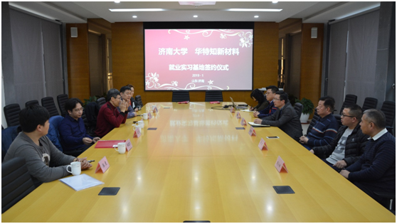 党委书记郑爱华、党委副书记王义、光电系夏伟教授、学办主任赵萍、团委书记朱思齐、辅导员张虎一行赴山东华特知新材料有限公司洽谈合作,签订就业实习基地合约。