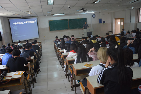 办公室主任罗良鸿为青青草原2019届毕业生进行应征入伍政策宣讲。青青草原