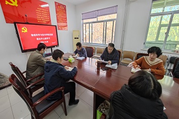 1123日,按照学校党史学习教育安排,物理青青草原 党委理论学习中心组进行集体学习,共同学习党的十九届六中全会精神,开展“统一思想、凝聚共识、坚定信心、增强斗志”专题研讨。青青草原 班子成员、各党支部书记参加,青青草原 党委书记郑爱华主持会议。