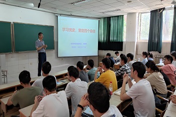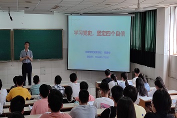 党委书记郑爱华于二教102为新一批入党积极分子上了以“学习党史,坚定四个自信”为主题的党课,有效地推动了党史学习教育在青年人中走深走实。